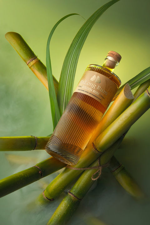 Hình ảnh bó mía, hoa, và lá xanh ôm lấy chai rượu không chỉ là tôn vinh nguồn gốc nguyên bản, mà còn là sự kết nối giữa thiên nhiên, con người và hương vị. HaLong Rum như một biểu tượng tinh tế cho sự khởi đầu nhẹ nhàng nhưng đầy chiều sâu, như chính từng giọt rượu sóng sánh trong ly.