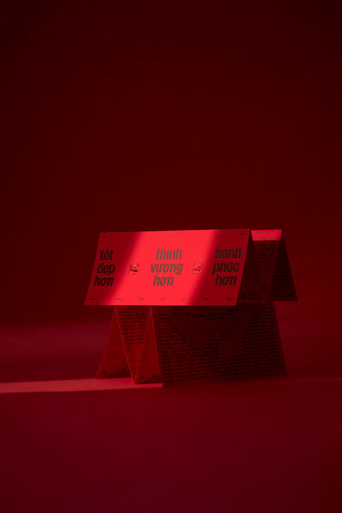 Drawing inspiration from ancient Vietnamese manuscript, the font used for The “Hơn” Project is built completely from scratch, allowing 365 wishful words to dance in harmony and minimalism. Intentional negative space encourages recipients to pause, reflect, and engage with the gift in a more personal way, bringing back fading memories of our past Tết holidays.